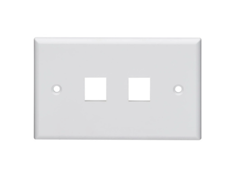 The Leviton 2‑Port Horizontal QuickPort Wallplate is a one‑piece horizontal single‑gang flush‑mount wallplate that fits standard NEMA openings and accommodates low‑voltage box eliminators. It provides two QuickPort openings, accepts all Leviton QuickPort snap‑in modules, and is made of high‑impact, fire‑retardant plastic rated UL 94V‑0. Package includes color‑matched imperial screws and bright zinc finished metric screws. Wallplates are sold empty.